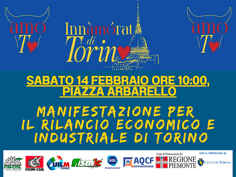 Torino, 14 febbraio – Nel giorno di San Valentino, le sigle territoriali dei metalmeccanici Fim, Fiom, Uilm, Fismic, Uglm e Aqcf promuovono una grande manifestazione per riportare al centro il futuro dell’automotive e dell’intero sistema produttivo locale. Il corteo partirà alle ore 10 da piazza Arbarello e si concluderà in piazza Castello, con la partecipazione di migliaia di lavoratrici e lavoratori provenienti dall’area metropolitana.
